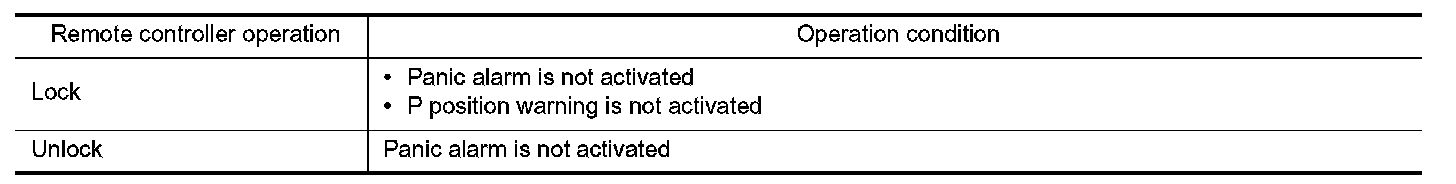 - When an LOCK signal is transmitted from Intelligent Key, all doors are locked.