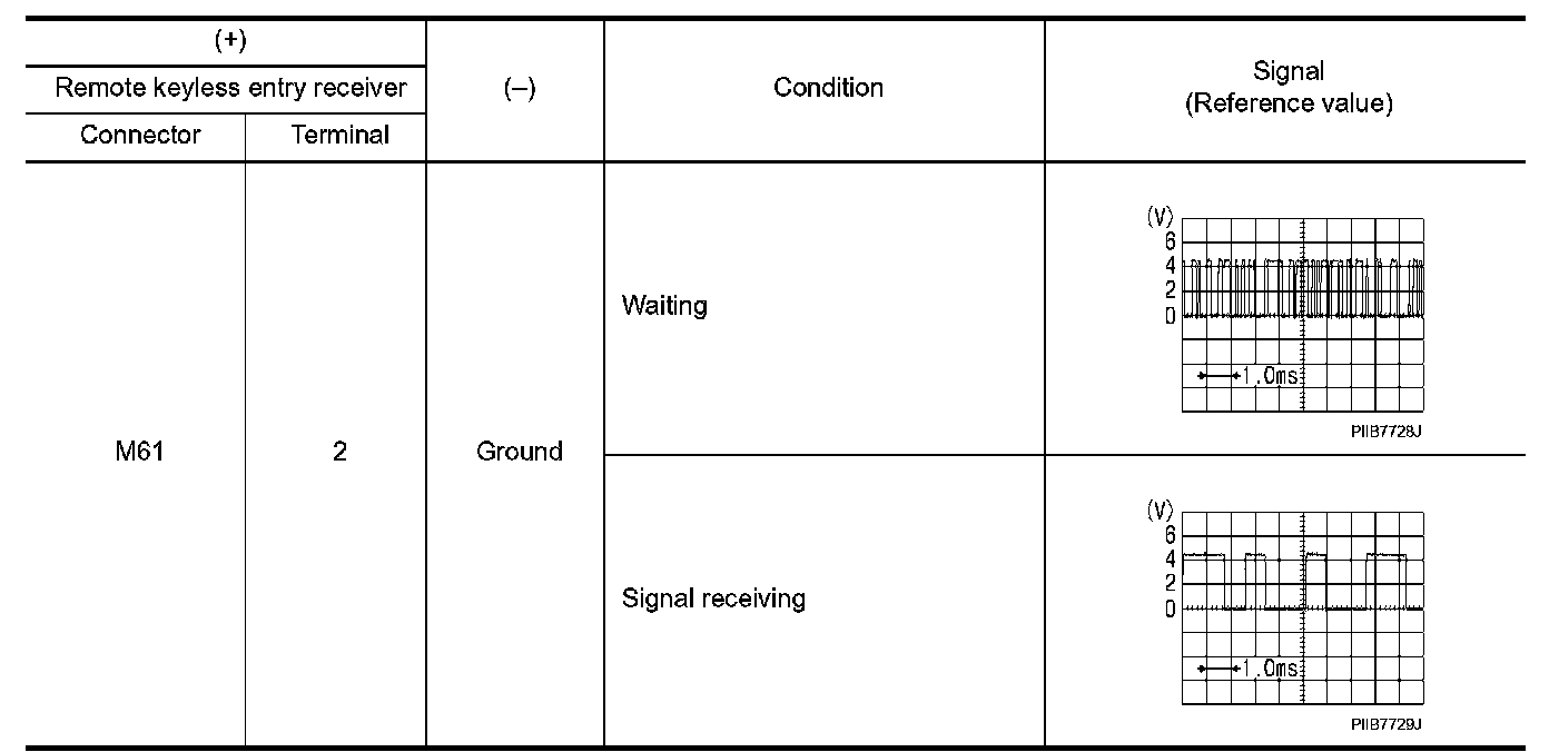 2. Check signal between remote keyless entry receiver harness connector and ground using oscilloscope.