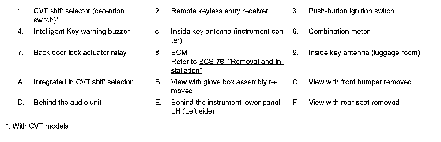 DOOR LOCK FUNCTION : Component Parts Location