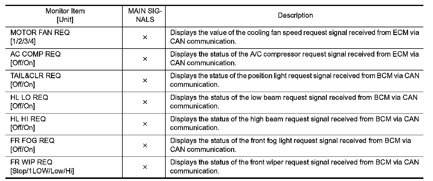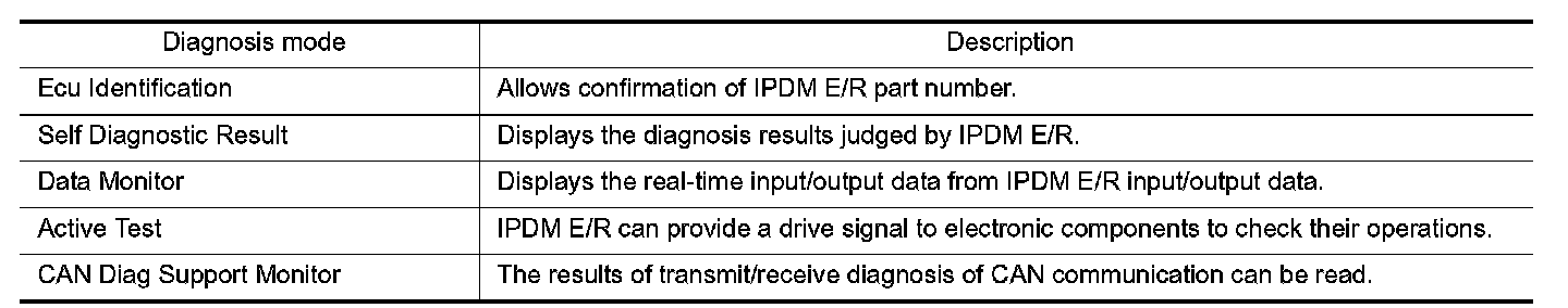 CONSULT-III performs the following functions via CAN communication with IPDM E/R.