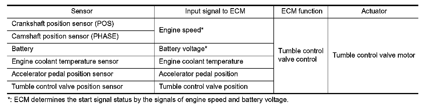 Also, except when idling and during low engine coolant temperature, this system opens the tumble control valve.