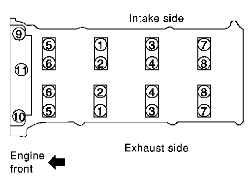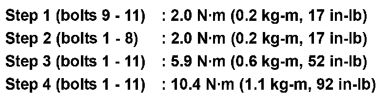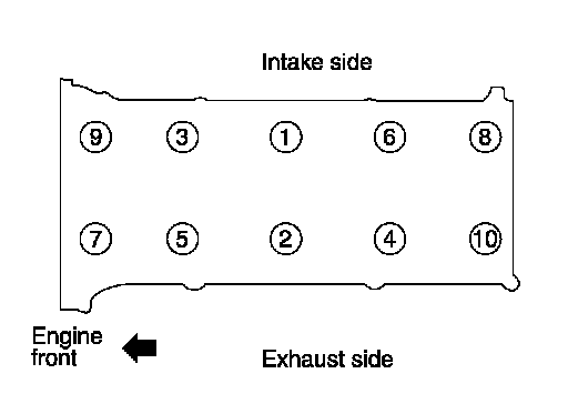 Install cylinder head following the steps below to tighten cylinder head bolts in numerical order as shown.