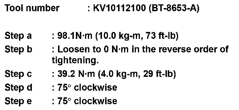CAUTION: If cylinder head bolts re-used, check their outer diameters before installation. Follow the "Cylinder Head Bolts Outer Diameter" procedure.