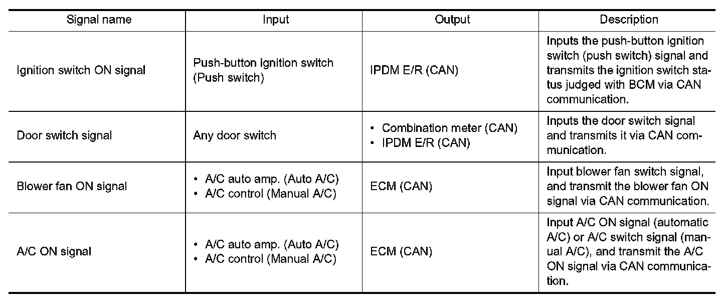 Signal transmission function list