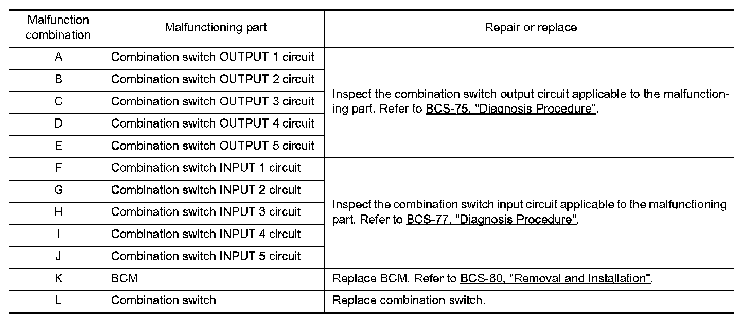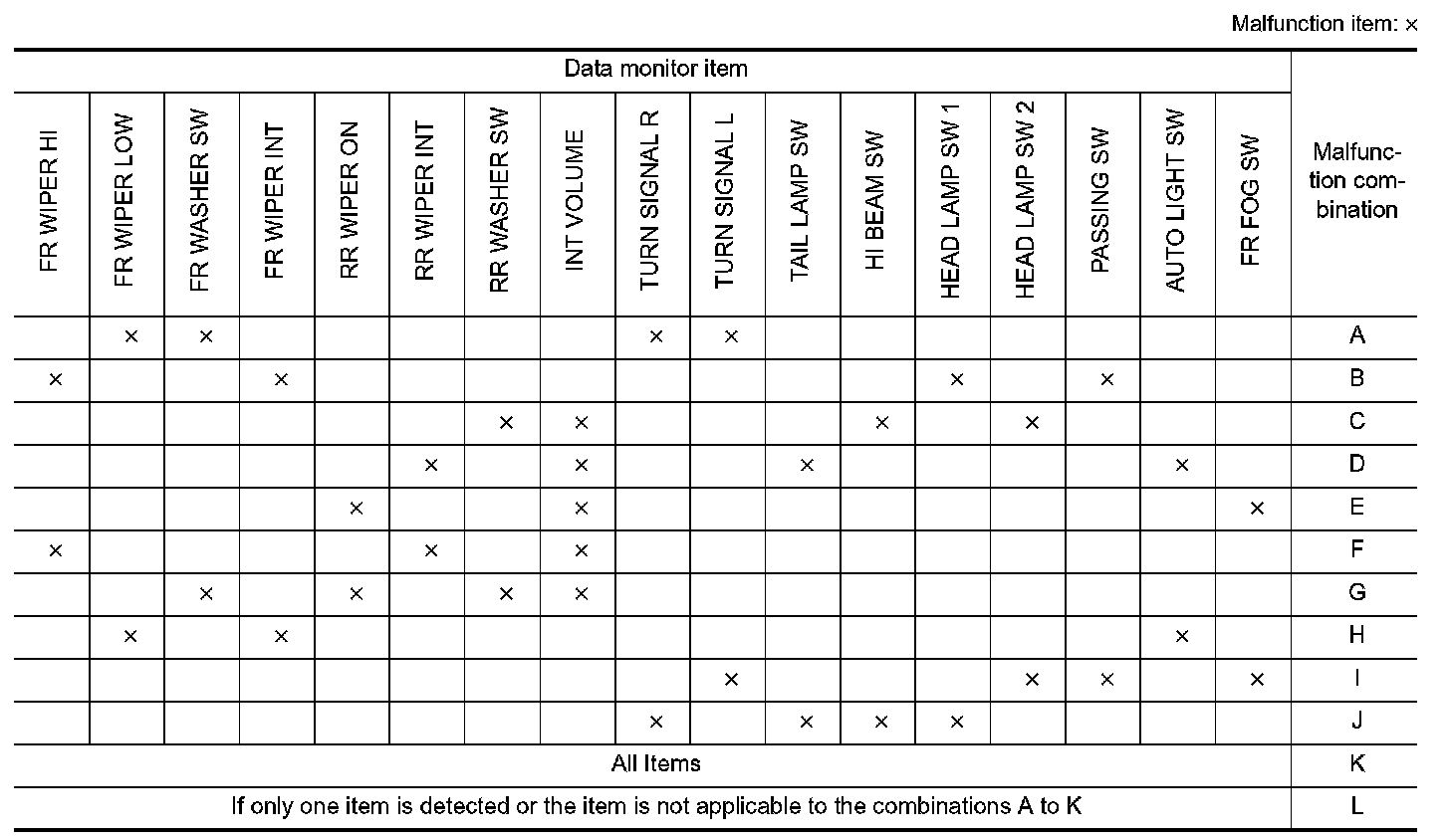 2. Check the malfunction combinations.