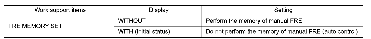 When the battery cable is disconnected from the negative terminal or when the battery voltage becomes 10 V or less, the setting of the FRE memory function may be cancelled.