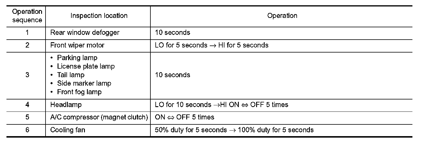 In auto active test mode, the IPDM E/R sends a drive signal to the following systems to check their operation.