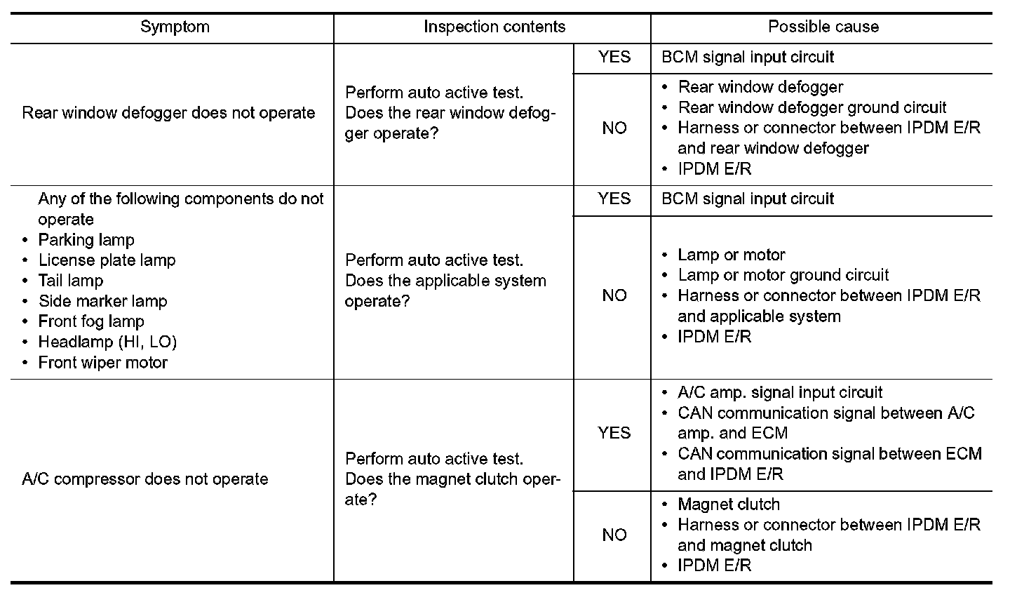 - The auto active test facilitates troubleshooting if any systems controlled by IPDM E/R cannot be operated.