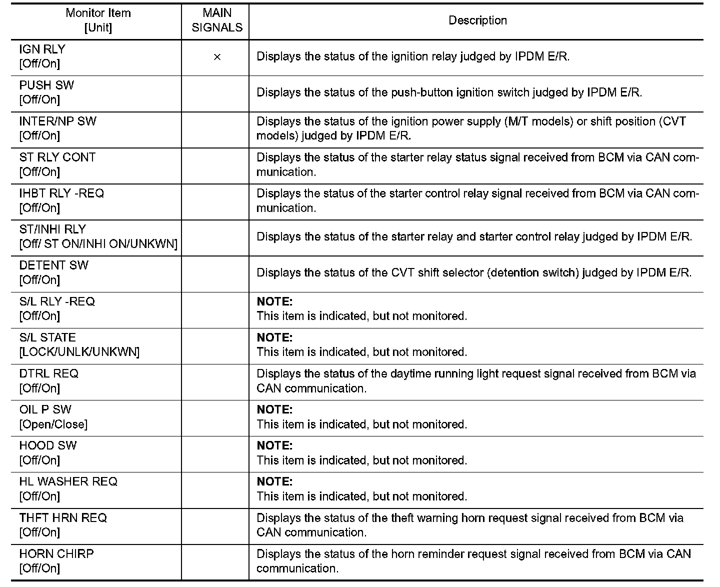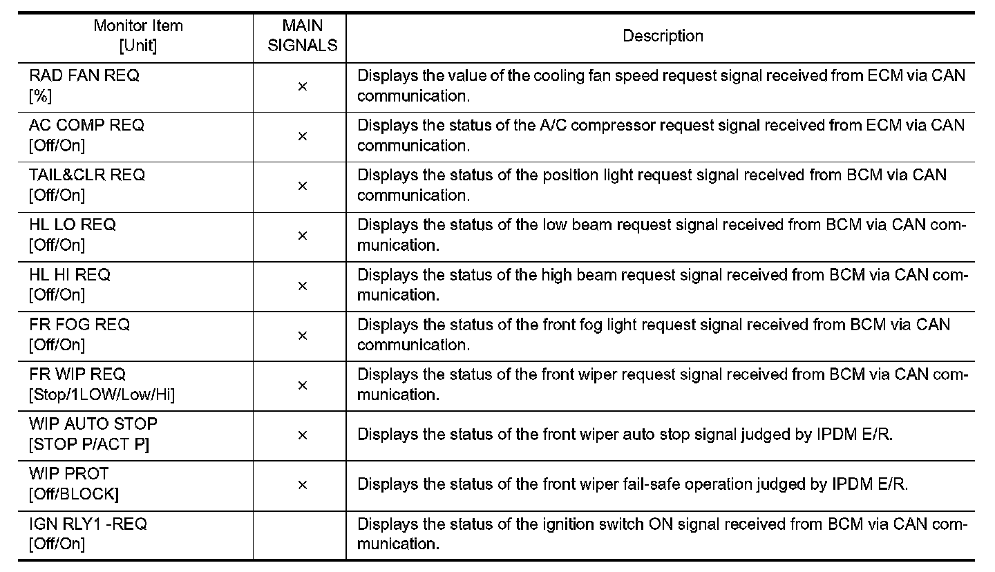 CONSULT-III performs the following functions via CAN communication with IPDM E/R.