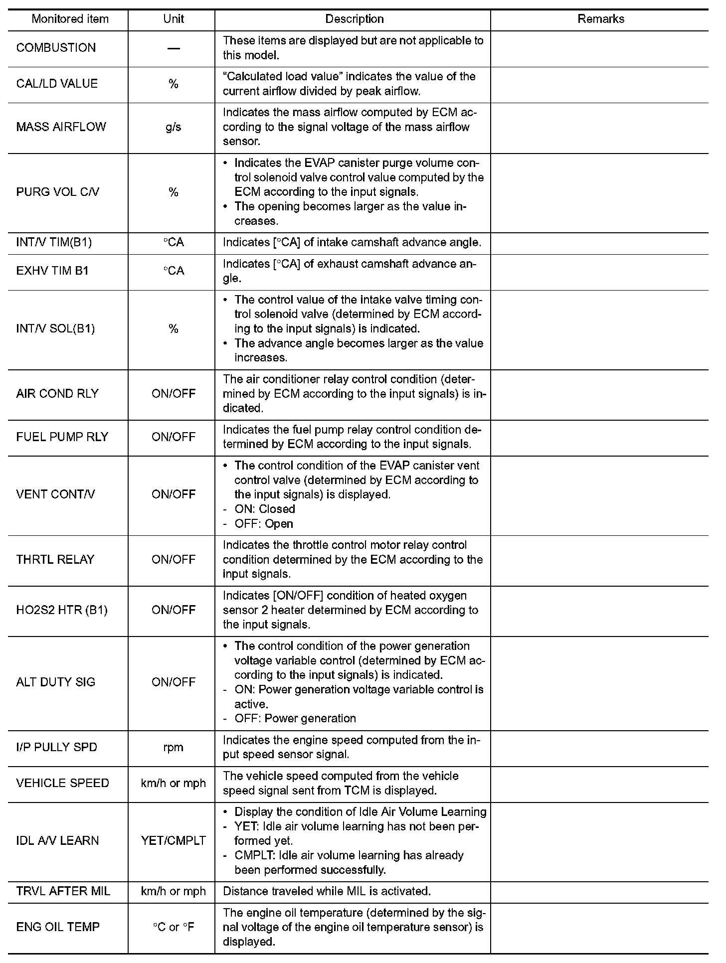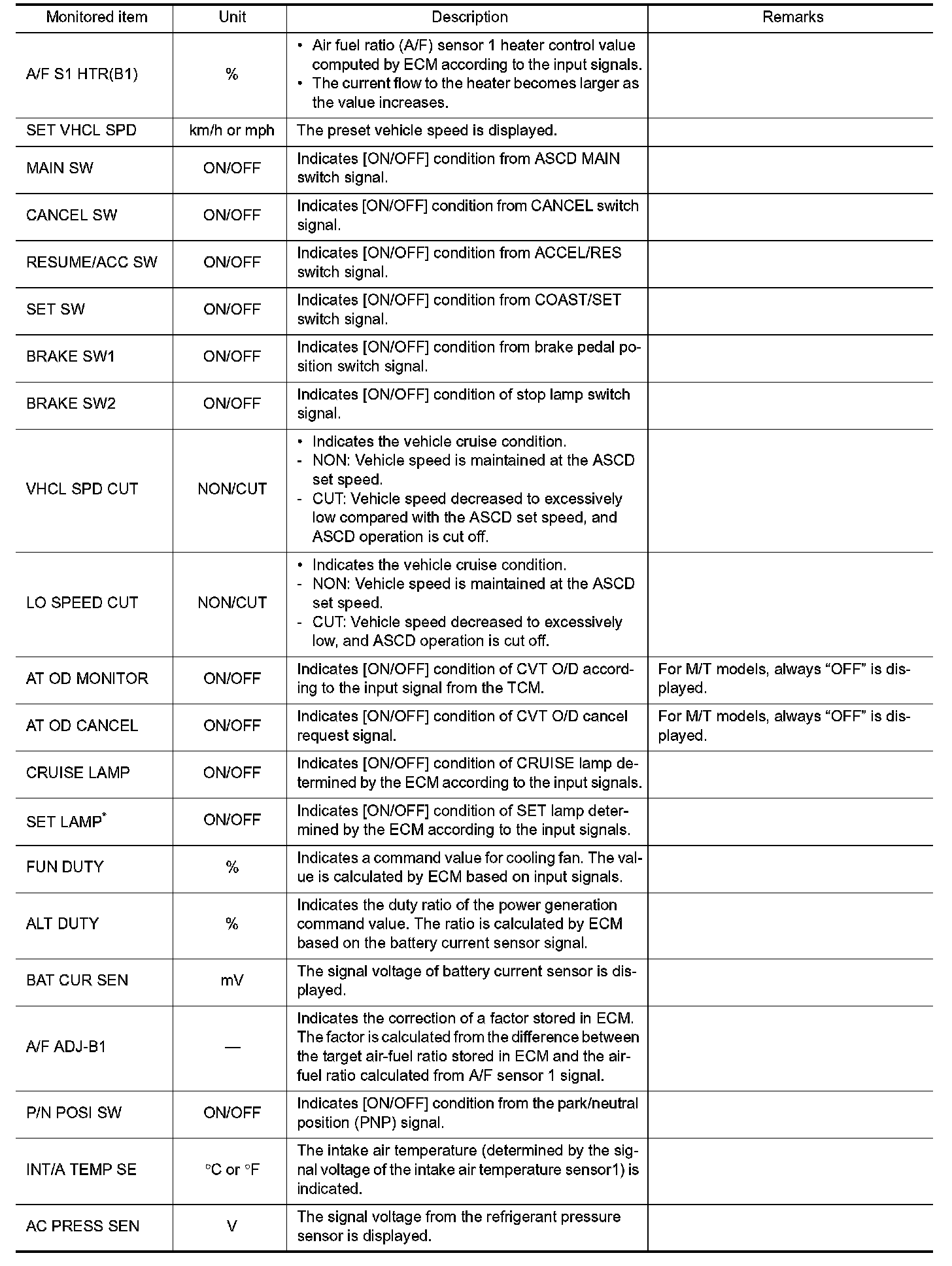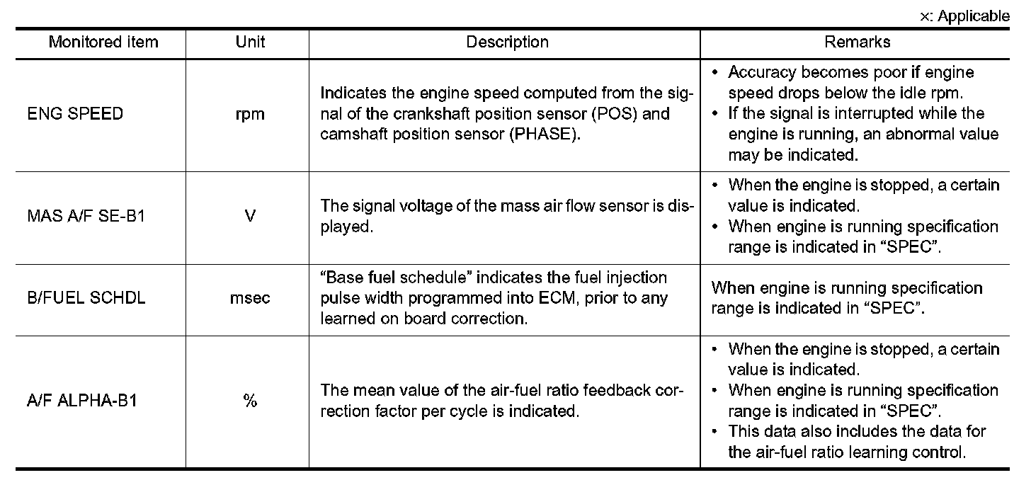 - If "TIME" is neither "0" nor "1t", the DTC occurred in the past and ECM shows the number of times the vehicle has been driven since the last detection of the DTC.