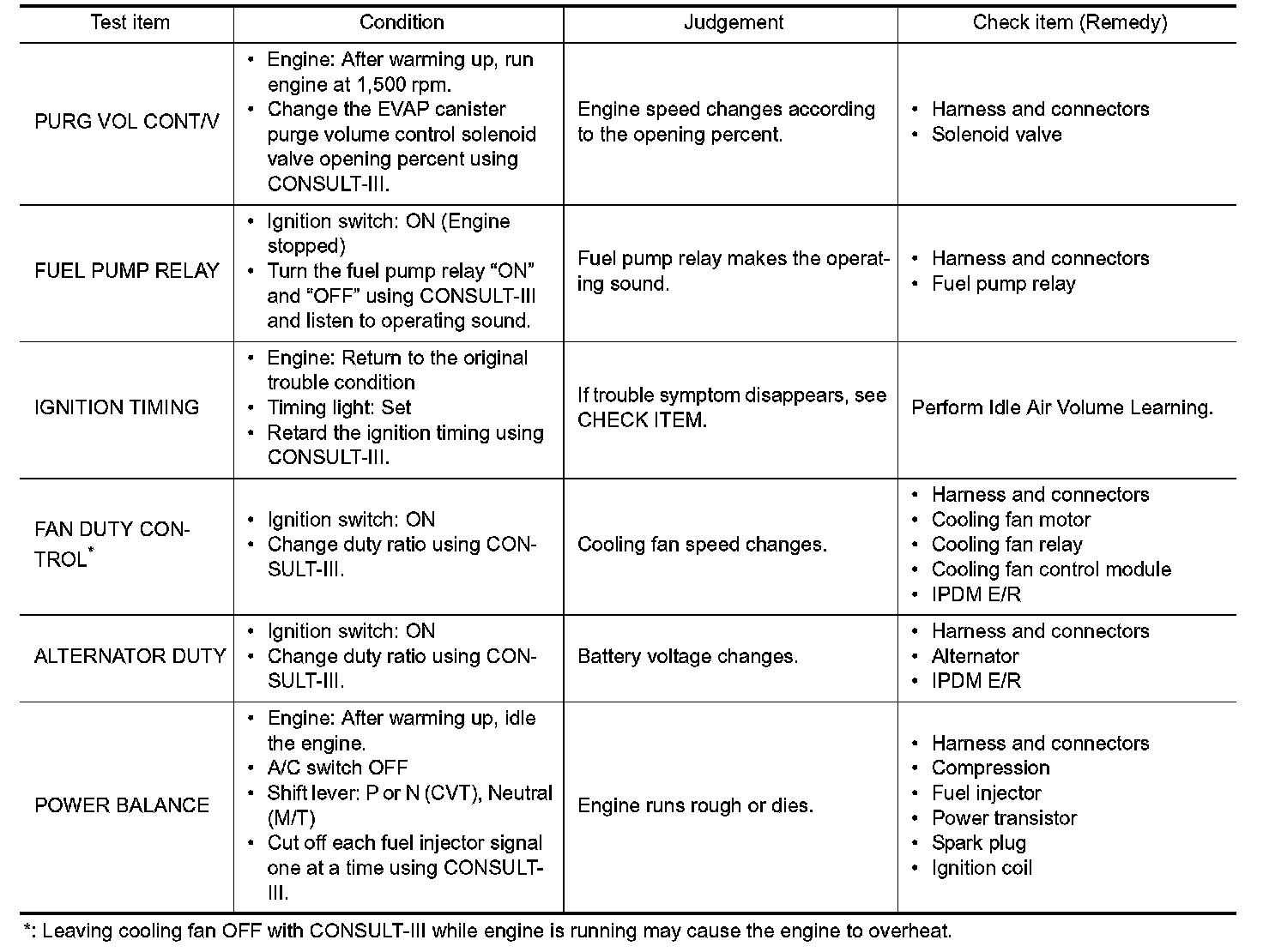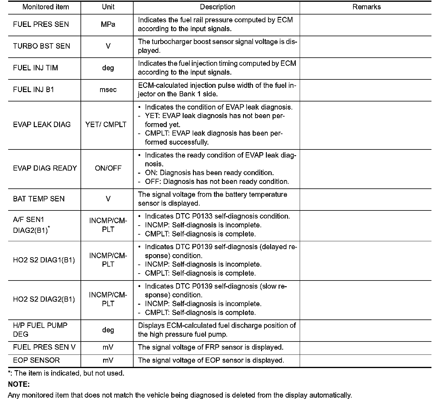 Regarding items of DTC and 1st trip DTC, Testing and Inspection.