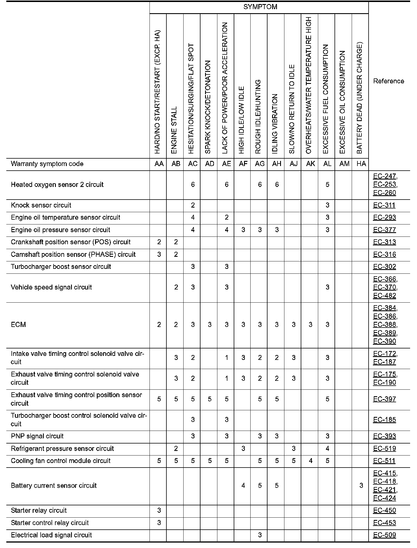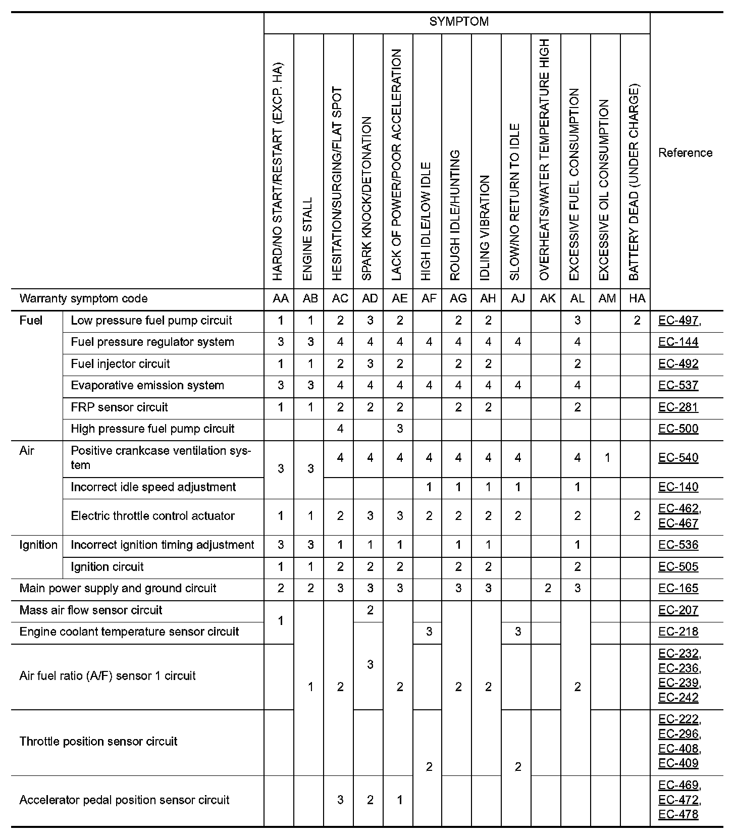 Symptom Table