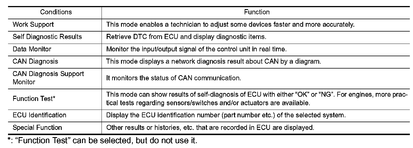 CONSULT-III can display each diagnostic item using the diagnostic test modes shown below.