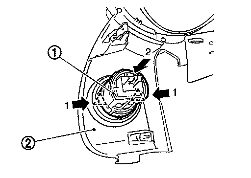 1. Disengage the push-button ignition switch (1) fixing pawls using minus driver etc.