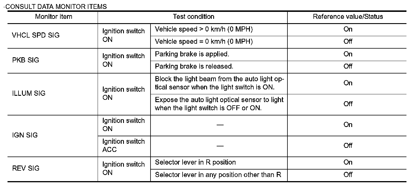 -CONSULT DATA MONITOR ITEMS