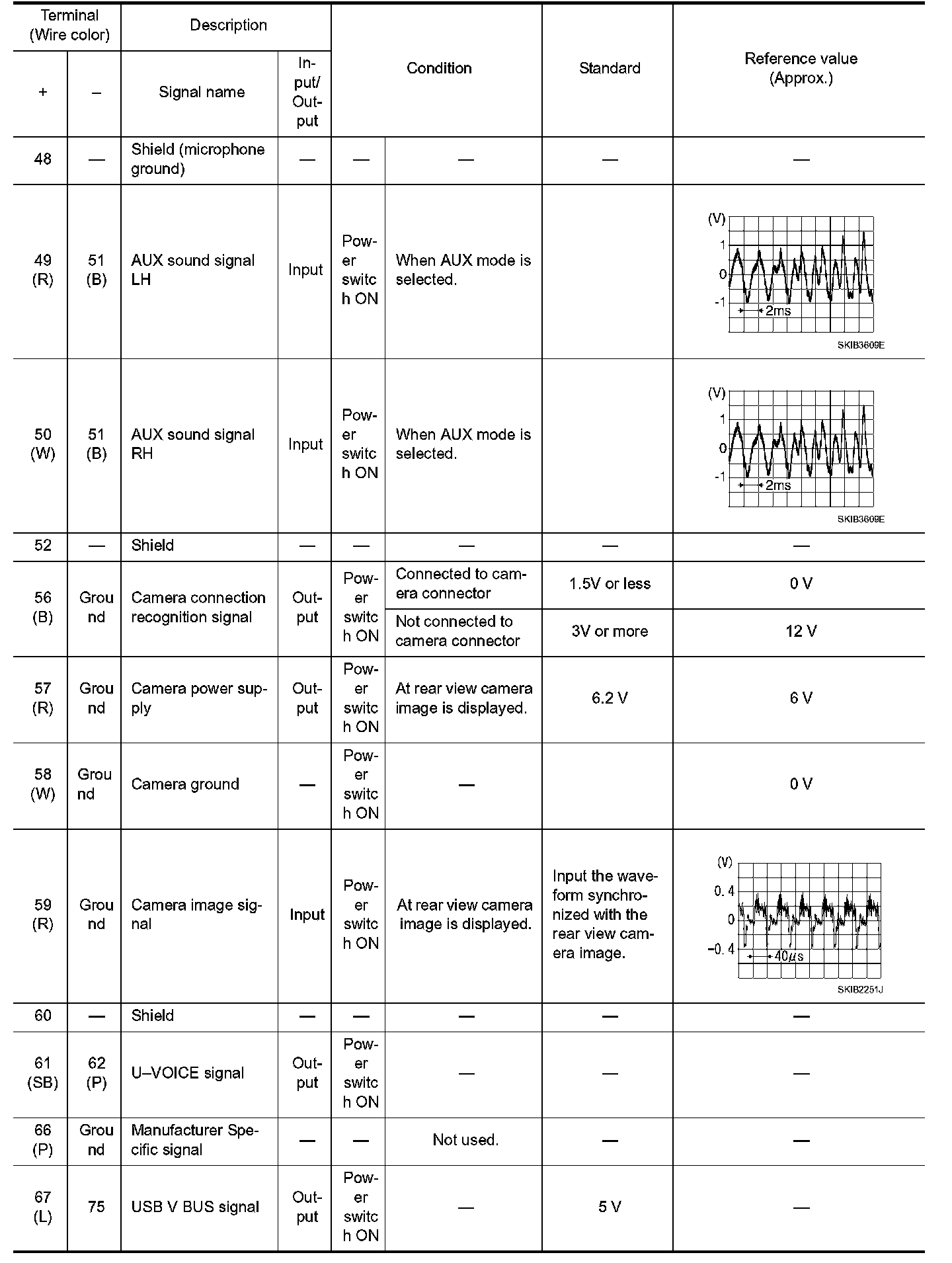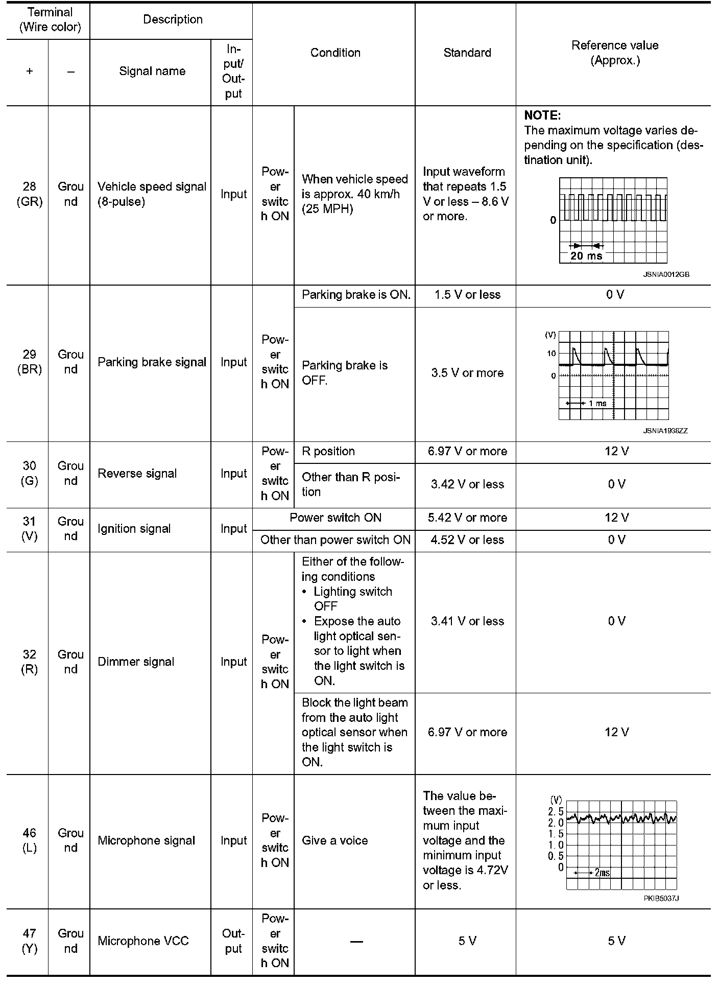 Pinout Values and Diagnostic Parameters