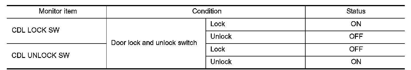 2.Select "CDL LOCK SW", "CDL UNLOCK SW" in "DATA MONITOR" mode.
