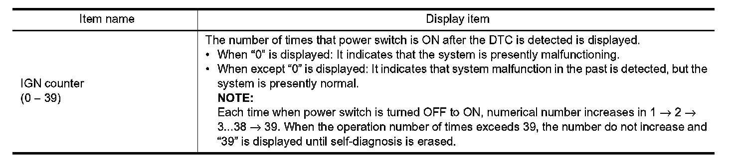 When DTC is detected, a vehicle status shown below is recorded and displayed on CONSULT.