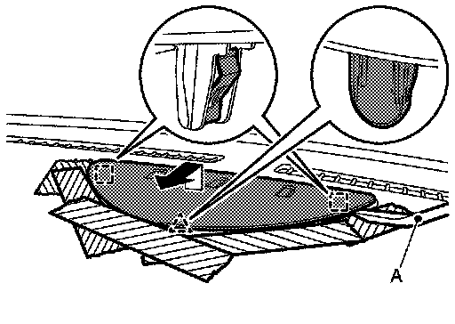 2.Insert remover tool (A) between charging status indicator and instrument panel assembly to disengage the pawl and metal clips as shown in the figure.