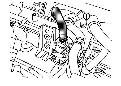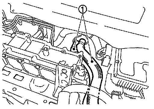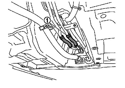 12.Disconnect heater hose (1) and move it out of the way to left side of vehicle.