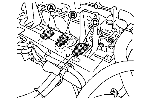 13.Remove DC/DC-J/B fastening nut (A) and fastening bolt (B).