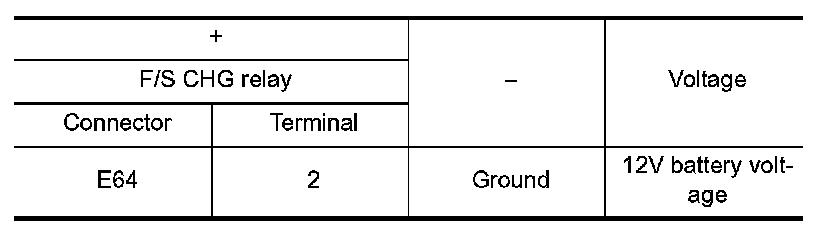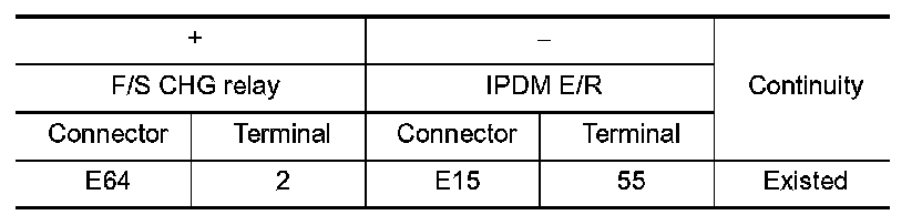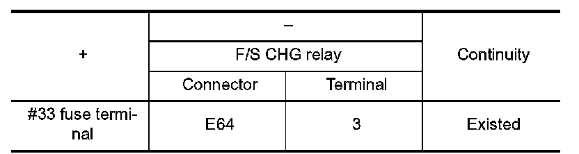 3.Check the continuity between F/S CHG relay terminals under the following conditions.