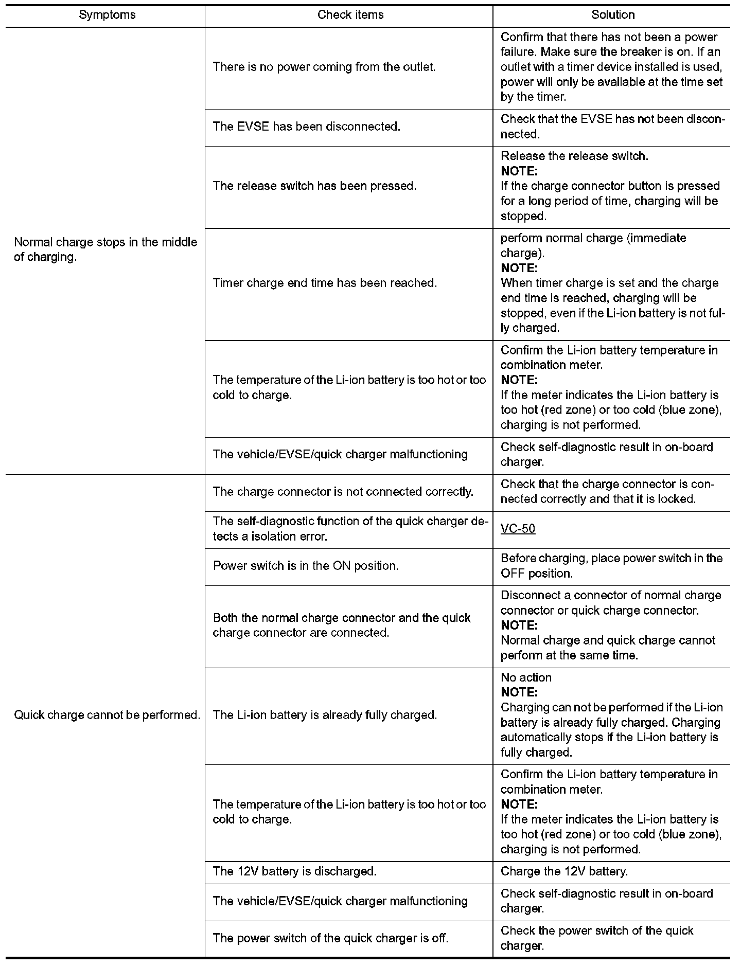 Symptom Table