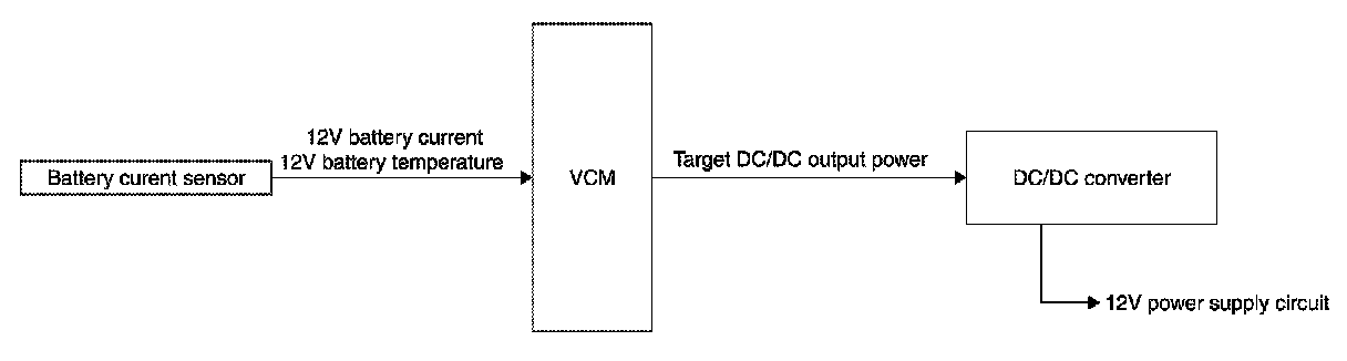 VCM judges the battery status and the use status of electric equipment based on those signals, determines a target output voltage, and transmits a target DC/DC output power signal to the DC/DC converter.