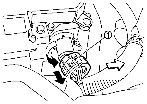 8.Turn traction motor inverter harness connector (1) of traction motor inverter counterclockwise to remove it.
