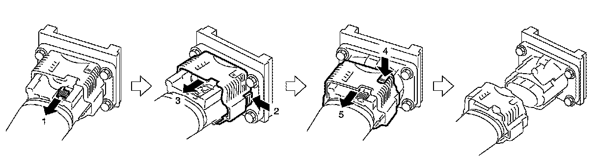 - Follow steps shown below to remove a 3-step type high voltage connector.
