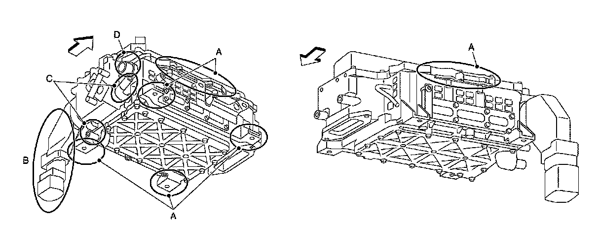 - If a bolt falls into traction motor inverter, do not invert traction motor inverter. (If inverted, bolt may contact PCB inside traction motor inverter, causing damage.)