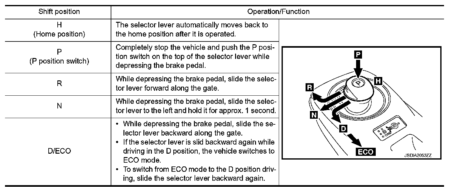 - Direct shifting to the ECO mode from the P position is not possible.