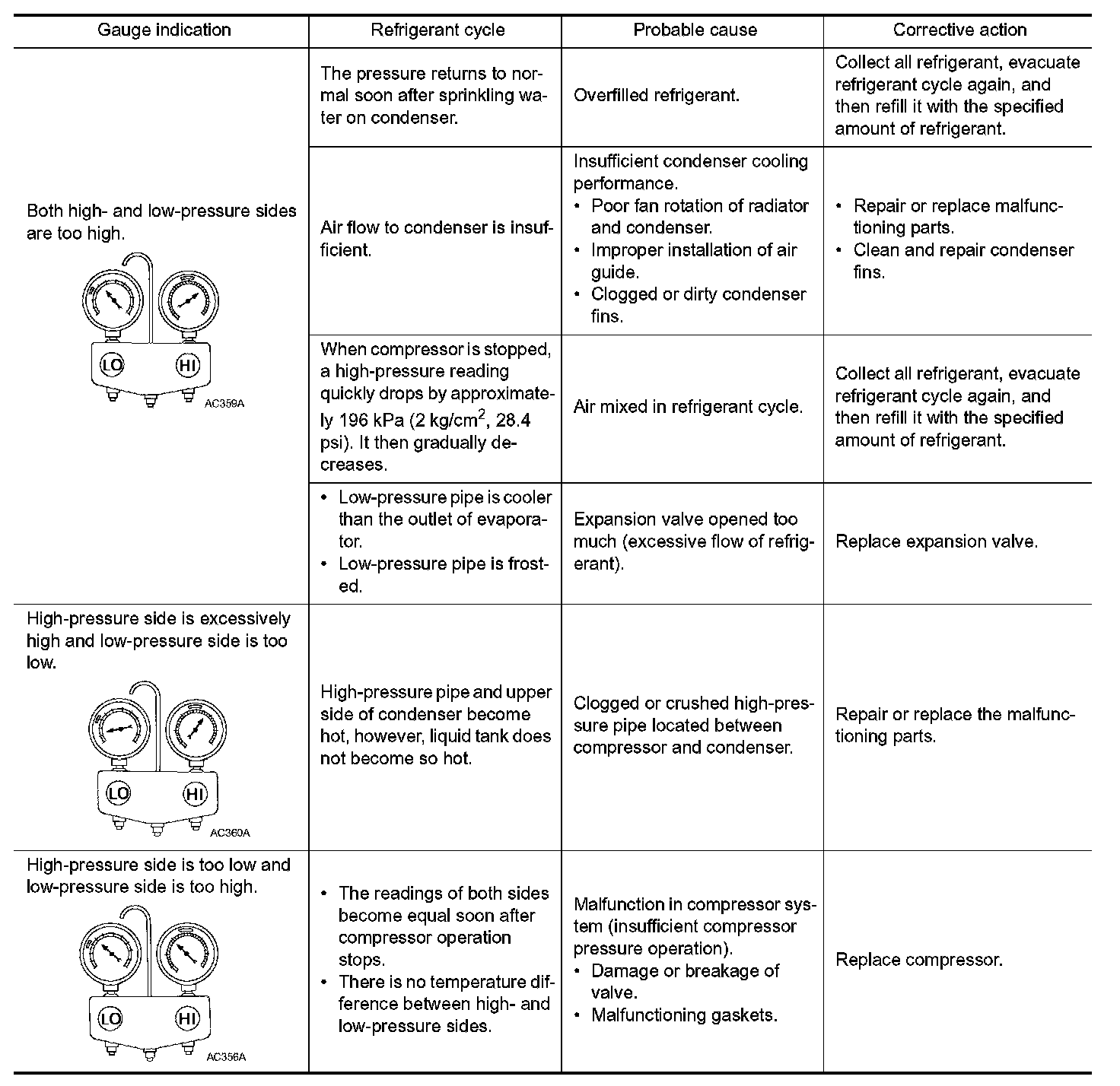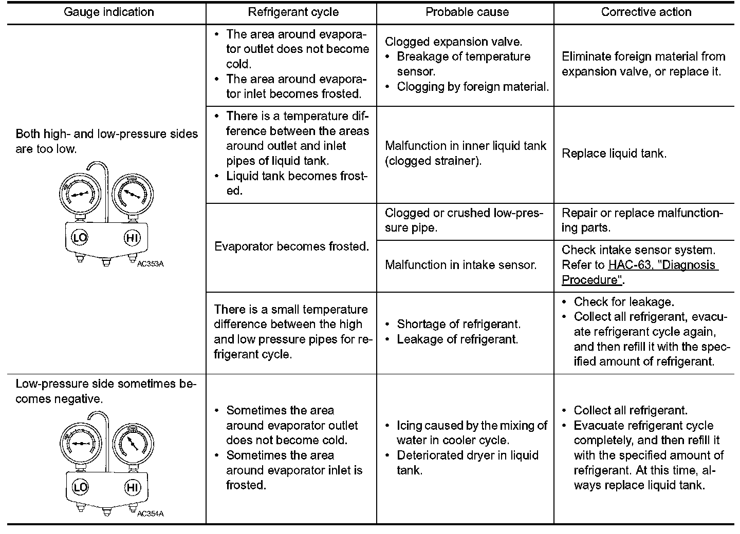 REFRIGERATION SYSTEM SYMPTOMS