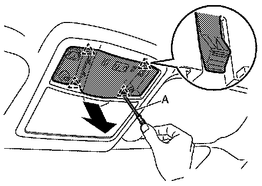 a.Disengage lamp unit fixing pawls with a remover tool (A).