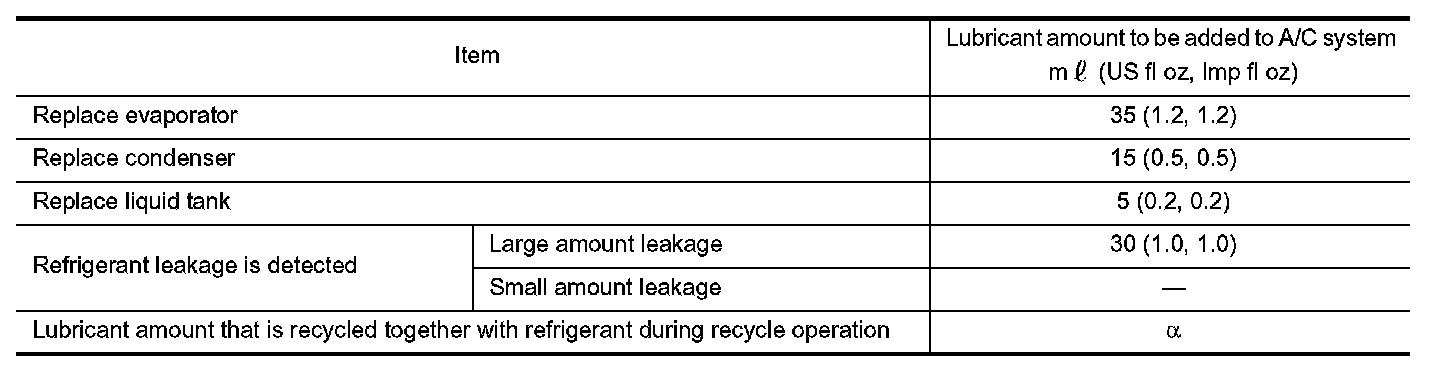 Example: Lubricant amount to be added when replacing evaporator and liquid tank [m (US fl oz, Imp fl oz)] =