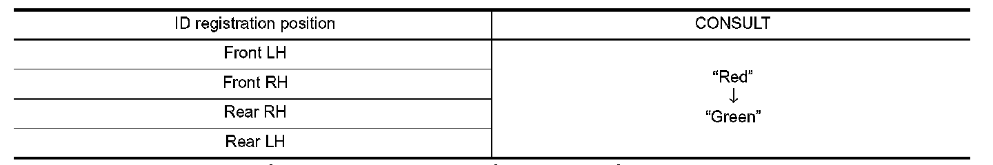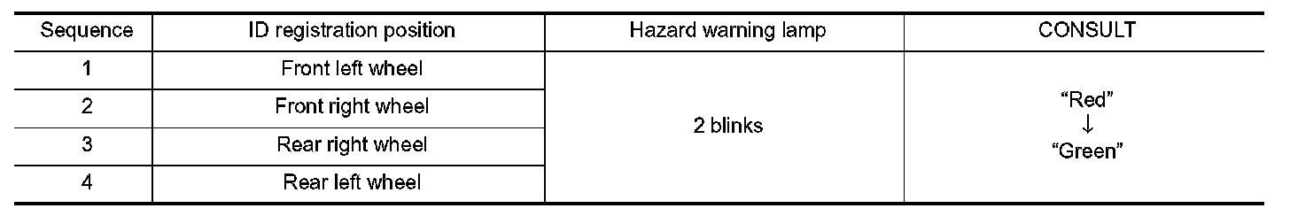Perform the ID registration procedure starting from the vehicle front left wheel, then repeat the procedure in the order of the front right wheel, rear right wheel, and rear left wheel.