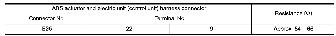 2.Check the resistance between the ABS actuator and electric unit (control unit) harness connector terminals.
