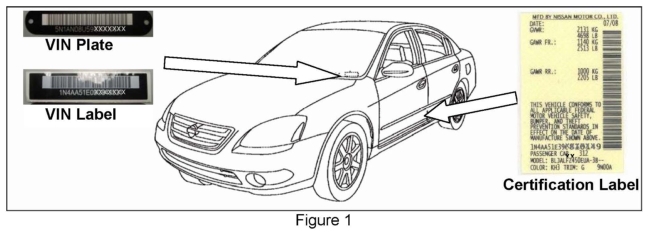 ^ The "Certification Label" (vinyl adhesive label) is located on the lower area of the driver side B-Pillar (see Figure 1).