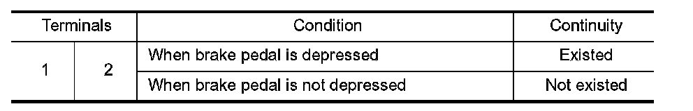 3.Check continuity between following terminals of the stop lamp switch.