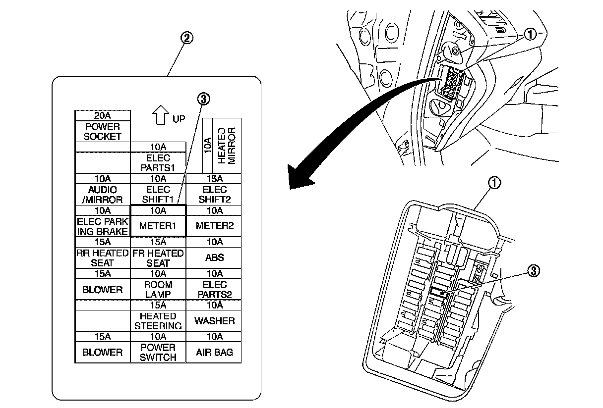 If the vehicle must be unavoidably moved with front wheel on the ground or four wheel on the ground, release the park lock and hold the park lock in the released status (N position). The park lock is activated when power switch is OFF or when 12V battery voltage is low. Always perform the following work so that the N position status is maintained. If the vehicle is moved without performing the following work, serious accident may be caused. Steering lock does not operate after performing this work.