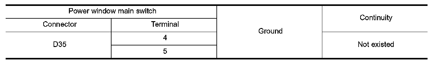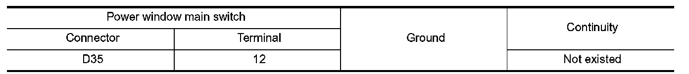 2.Check continuity between power window main switch harness connector and front power window motor (driver side) harness connector.