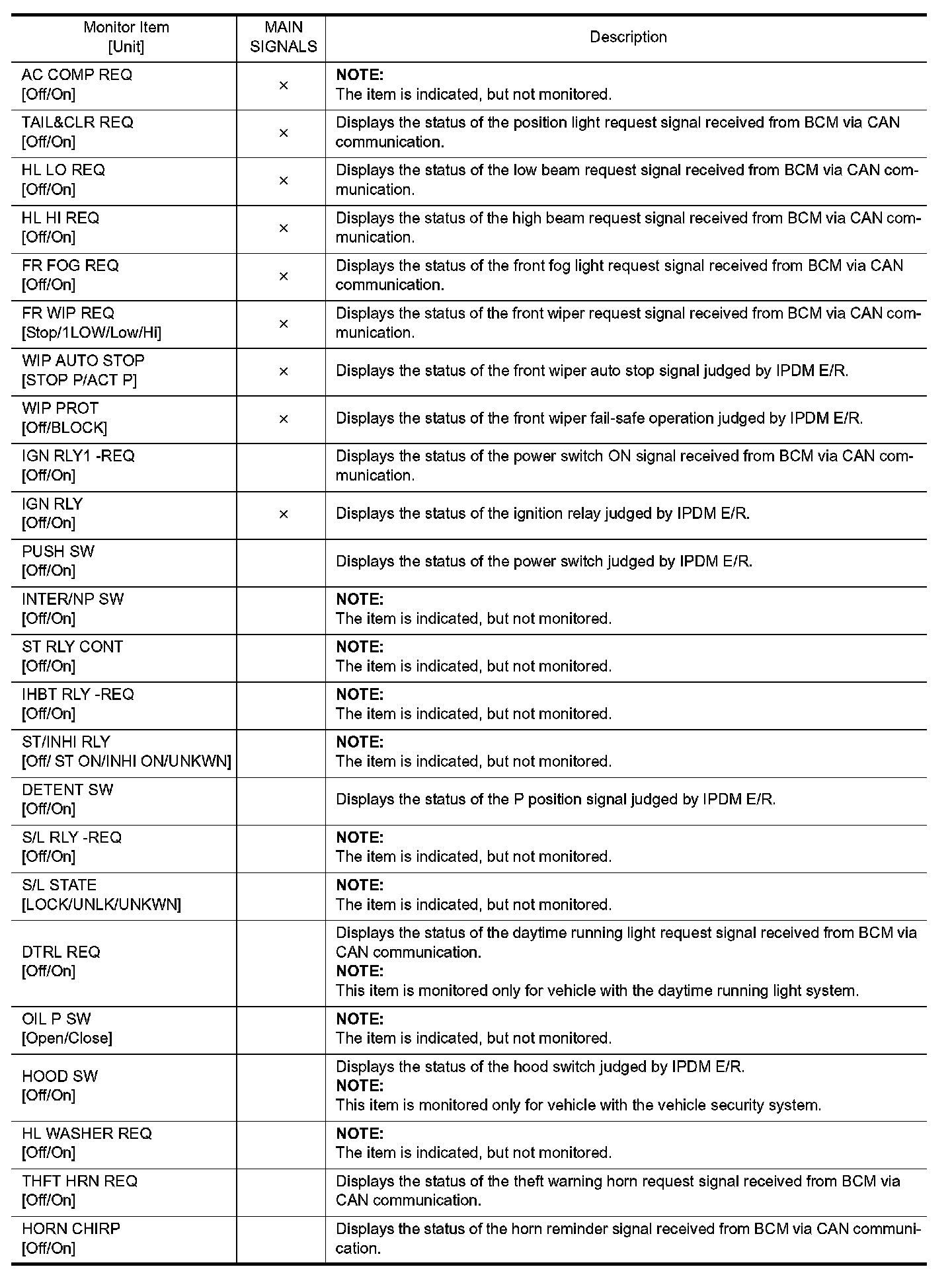 CONSULT performs the following functions via CAN communication with IPDM E/R.