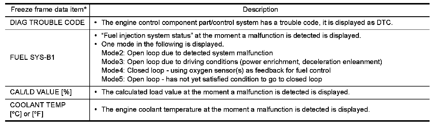 Regarding items of DTC and 1st trip DTC, Emission-Related Diagnostic Information (Except For California).