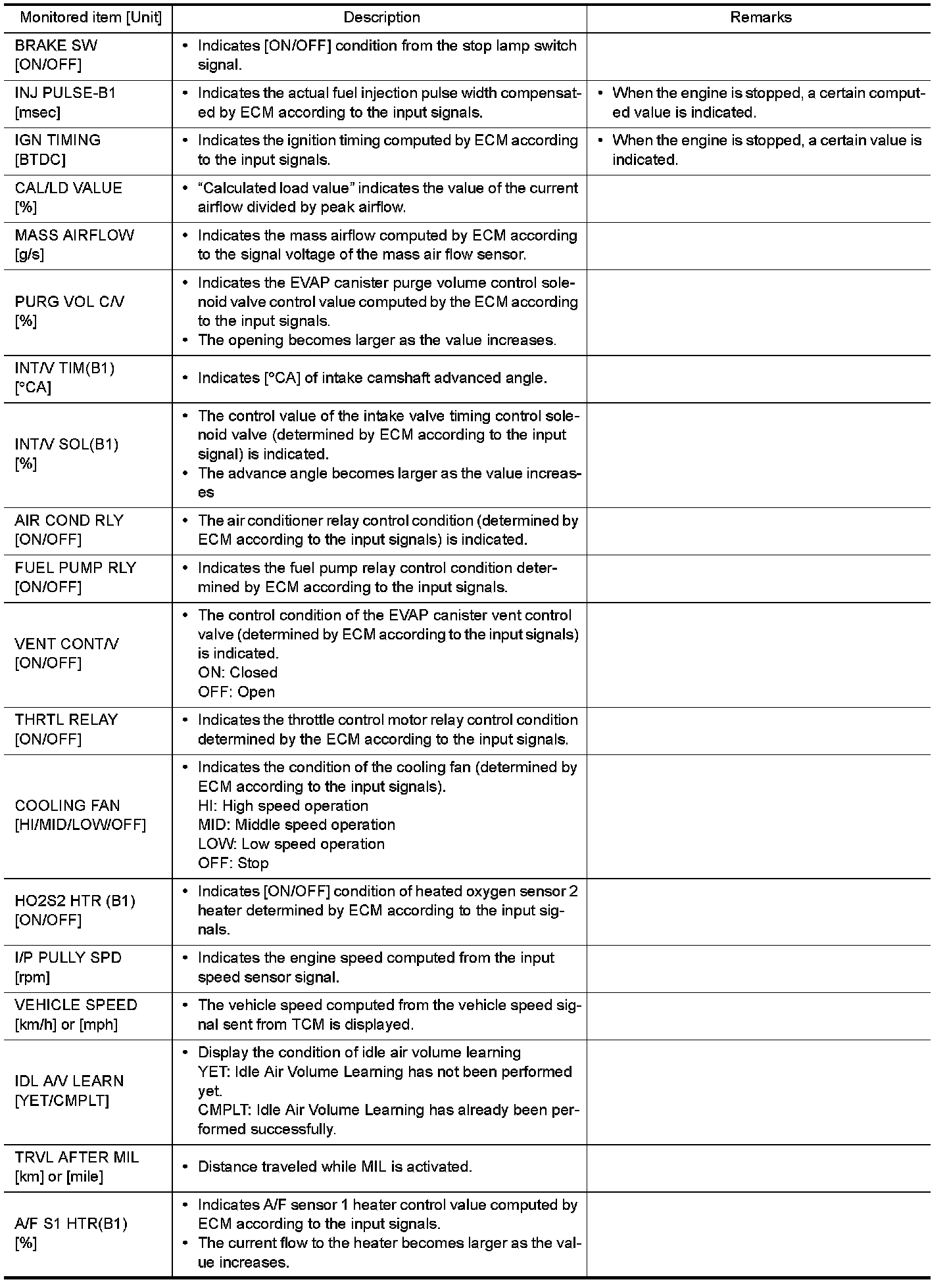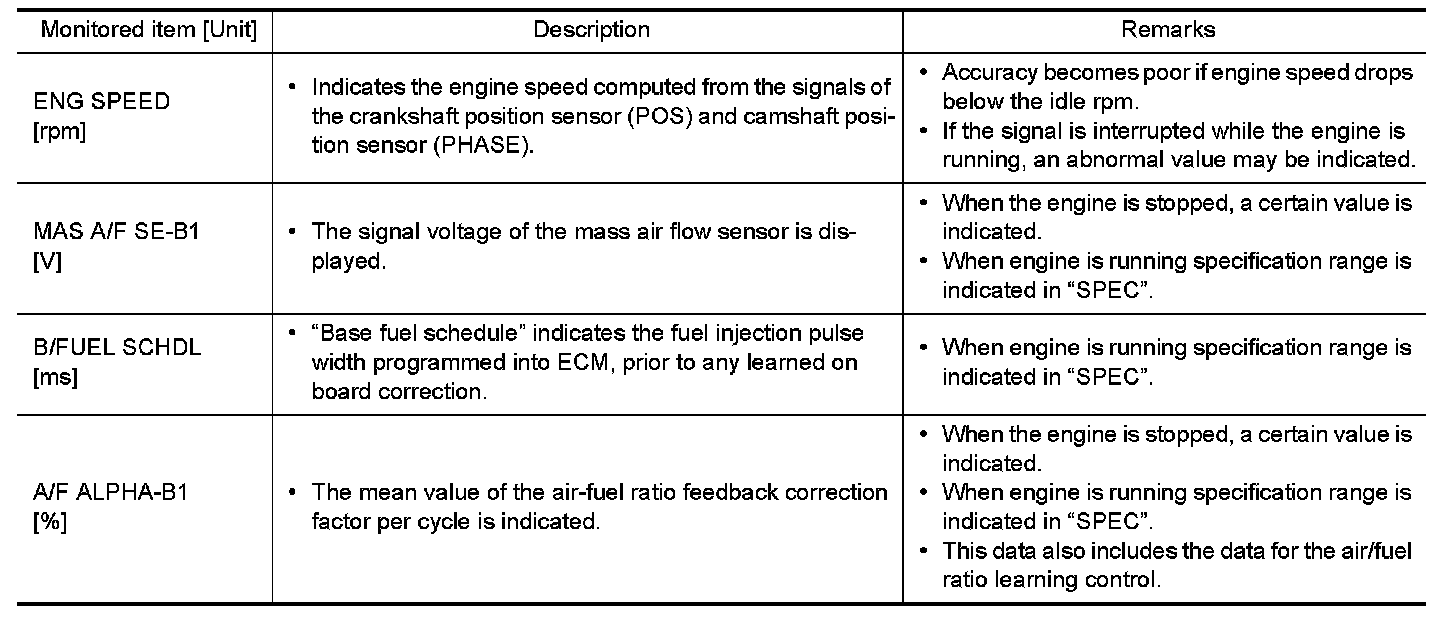 - If "TIME" is neither "0" nor "1t", the DTC occurred in the past and ECM shows the number of times the vehicle has been driven since the last detection of the DTC.