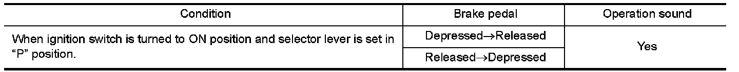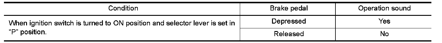 - Selector lever can be moved from "P" position with ignition key in ON position and brake pedal released.