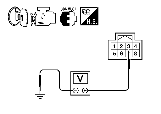 Check voltage between CVT shift selector harness connector M38 terminal 3 and ground.