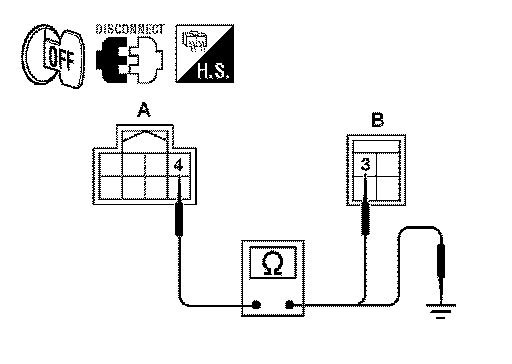 3. Check continuity between CVT shift selector connector M38 (A) terminal 4 and stop lamp switch connector E60 (B) terminal 3.