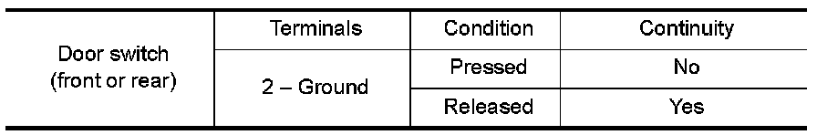 Check continuity between door switch terminals.