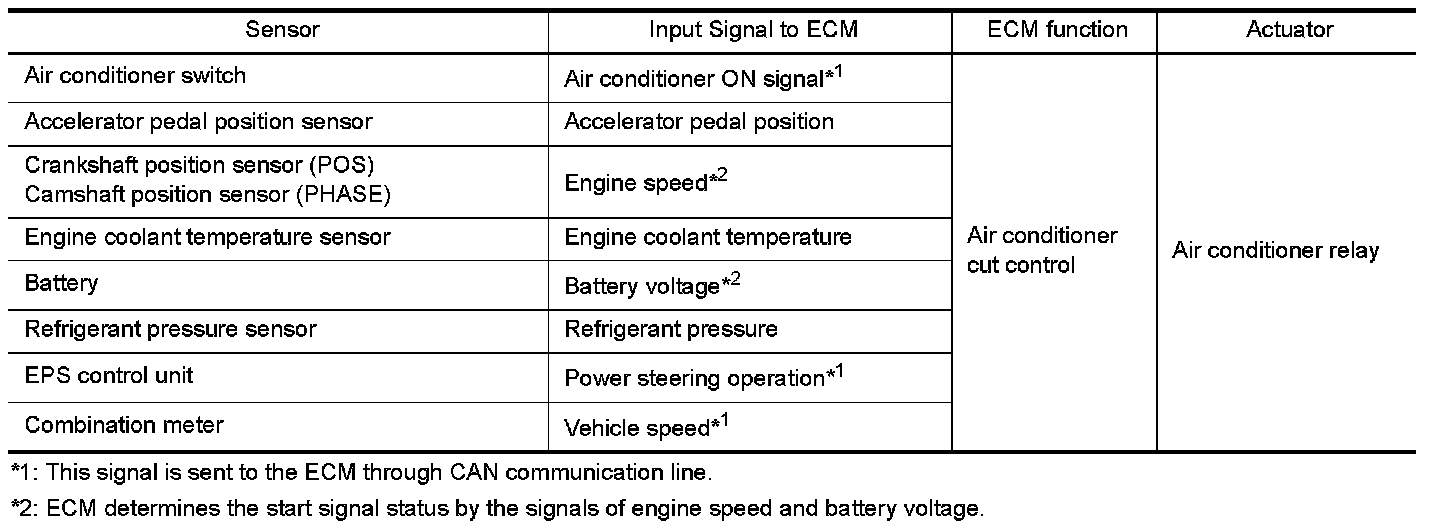 Input/Output Signal Chart Air Conditioning Cut Control