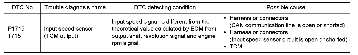 - If DTC P1715 is displayed with DTC UXXXX first perform the trouble diagnosis for DTC UXXXX.